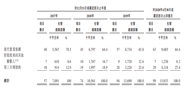 第一服务自第三方开发商获取的合约建筑面积由20171231日的2.7百万平方米增加至20191231日的9.7百万平方米,复合年增长率达到89.5%。截至2020430日,第一服务自第三方开发商获取的合约建筑面积已经达到10.2百万平方米。