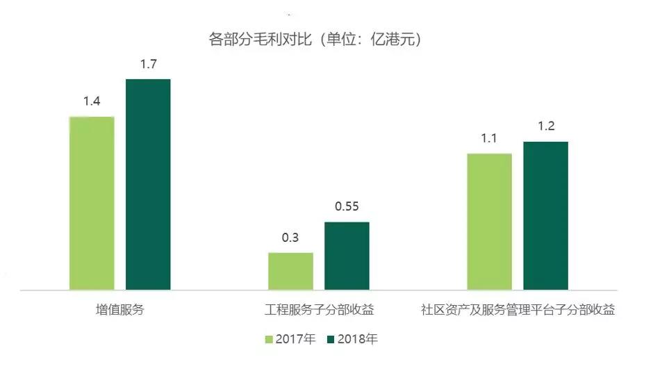 增值服务方面,截至2018年底,收益占总收益比例从2017年7.8%增加至9.9%,总收益较2017年大幅上升55.7%至4.09亿港元。