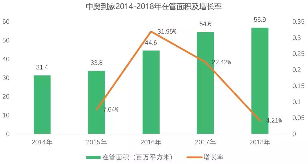 营收增速较大幅度的下降主要源于其管理规模增长速度的放缓。中奥到家的营收的增长趋势与在管面积的增长趋势基本一致,2018年其在管面积增长速度的下滑带来收入规模的下滑。