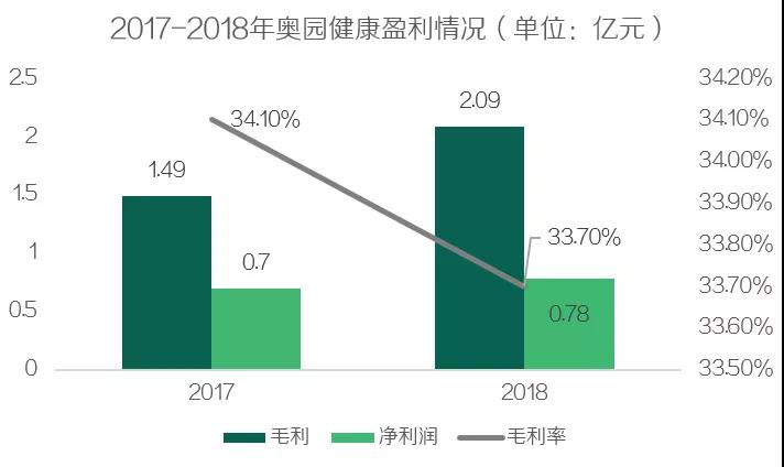 2018年,奥园健康毛利约人民币2.09亿元,同比增长40.6%,毛利率为34.1%,保持稳定。