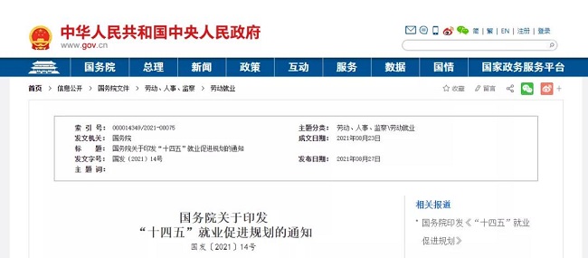 现将《“十四五”就业促进规划》印发给你们,请认真贯彻执行。