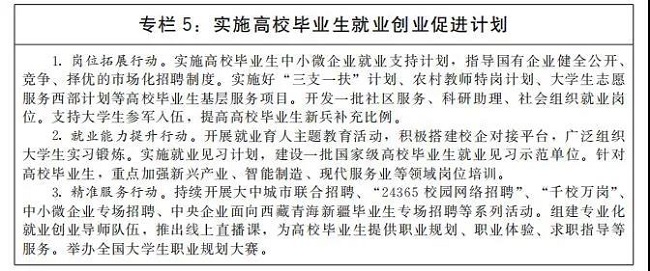 拓宽高校毕业生市场化社会化就业渠道。结合国家重大战略布局、现代产业体系建设、中小企业创新发展,创造更多有利于发挥高校毕业生专长和智力优势的知识技术型就业岗位。健全激励保障机制,畅通成长发展通道,引导高校毕业生到中西部、东北、艰苦边远地区和城乡基层就业。围绕乡村振兴战略,服务乡村建设行动和基层治理,扩大基层教育、医疗卫生、社区服务、农业技术等领域就业空间。为有意愿、有能力的高校毕业生创新创业提供资金、场地和技术等多层次支持。