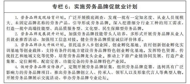 稳定和扩大农村劳动力外出就业规模。广泛开展区域间劳务协作,健全劳务输入集中区域与劳务输出省份对接协调机制,加强劳动力跨区域精准对接,发展劳务组织和经纪人,有序组织输出地农村劳动力外出务工。培育一批有地域特色、行业特征、技能特点,带动农村劳动力就业效果好的劳务品牌。实施农民工素质提升工程,推进新生代农民工职业技能提升计划。创建一批农村劳动力转移就业示范县。