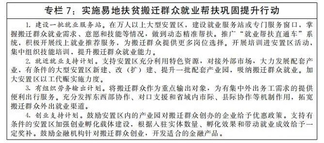 稳定脱贫人口就业。健全脱贫人口、农村低收入人口就业帮扶长效机制,保持脱贫人口就业领域的扶持政策、资金支持、帮扶力量总体稳定。健全有组织劳务输出工作机制,将脱贫人口作为优先保障对象,稳定外出务工规模。支持脱贫地区大力发展当地优势特色产业,继续发挥就业帮扶车间、社区工厂、卫星工厂等就业载体作用,为脱贫人口创造就地就近就业机会。聚焦国家乡村振兴重点帮扶县、易地扶贫搬迁安置区,积极引进适合当地群众就业需求的劳动密集型、生态友好型企业(项目),增加本地就业岗位,组织专项就业服务活动实施集中帮扶。