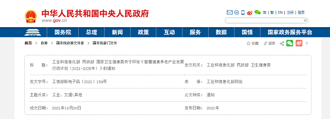 智慧健康养老产业发展行动计划 (2021-2025 年)
