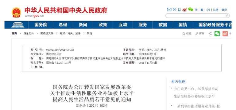 国务院办公厅转发国家发展改革委关于推动生活性服务业补短板上水平提高人民生活品质若干意见的通知