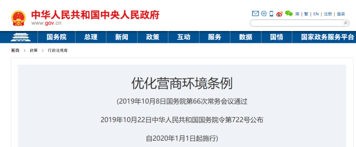 优化营商环境条例 2020年1月1日起施行