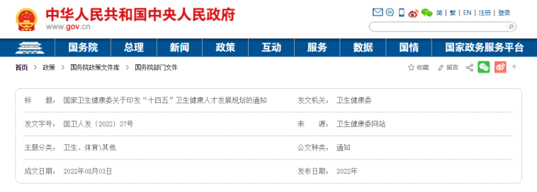 国家卫生健康委关于印发“十四五”卫生健康人才发展规划的通知