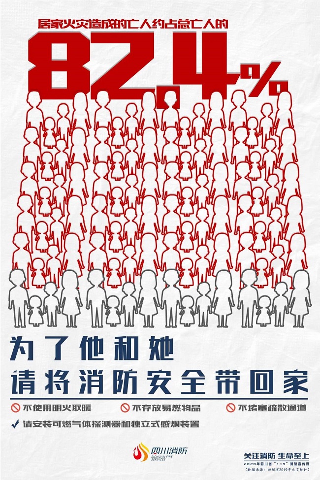 2019年,四川省共发生火灾14249起,居家火灾达8205起,占全年火灾总数的57.6%,造成52人死亡,占总数的82.4%,63人受伤,占总数的69.2%,直接经济损失达4929万元。
