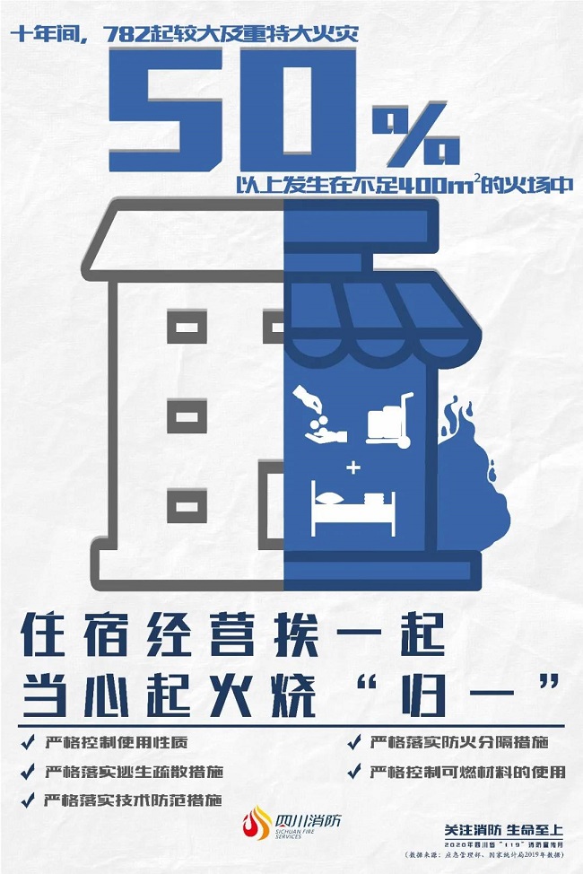 十年间,全国共发生782起较大及重特大火灾,50%以上发生在面积不足400平方米的火场中,却造成了平均每起案件5人遇难的严重后果。