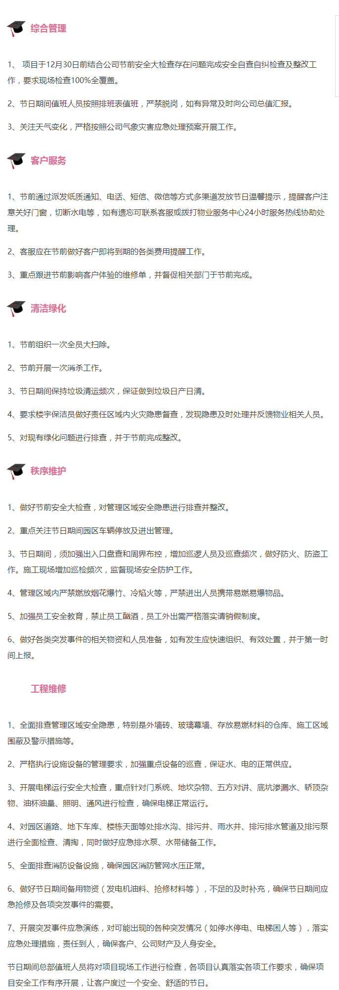 元旦期间物业人工作重点