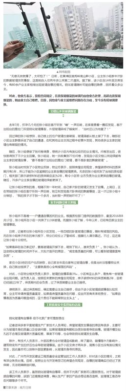 小区80余户钢化玻璃相继自爆 物业:过了保质期要业主自己维修