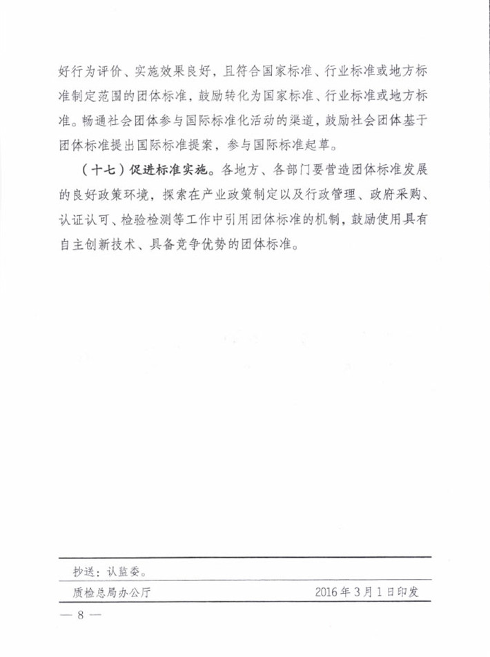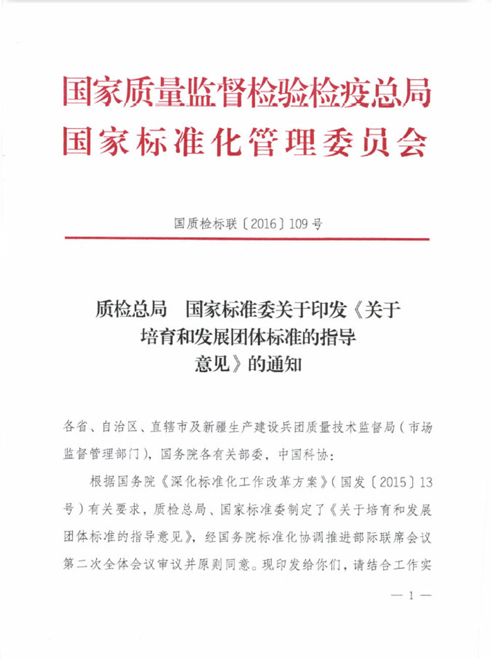 质检总局 国家标准委:关于印发《关于培育和发展团体标准的指导意见》的通知