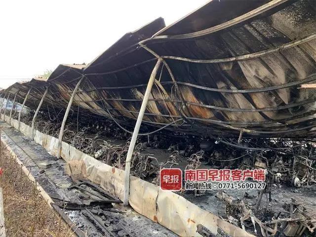 313日凌晨3点,南宁市印务中心对面的一处小区电车棚发生火灾,火势蔓延极快。仅20分钟,棚内所有电动车(约300多辆)被烧毁,还有十几部汽车也被烤烂车灯或车尾、车头盖,损失惨重。几分钟后,消防赶到现场灭火。